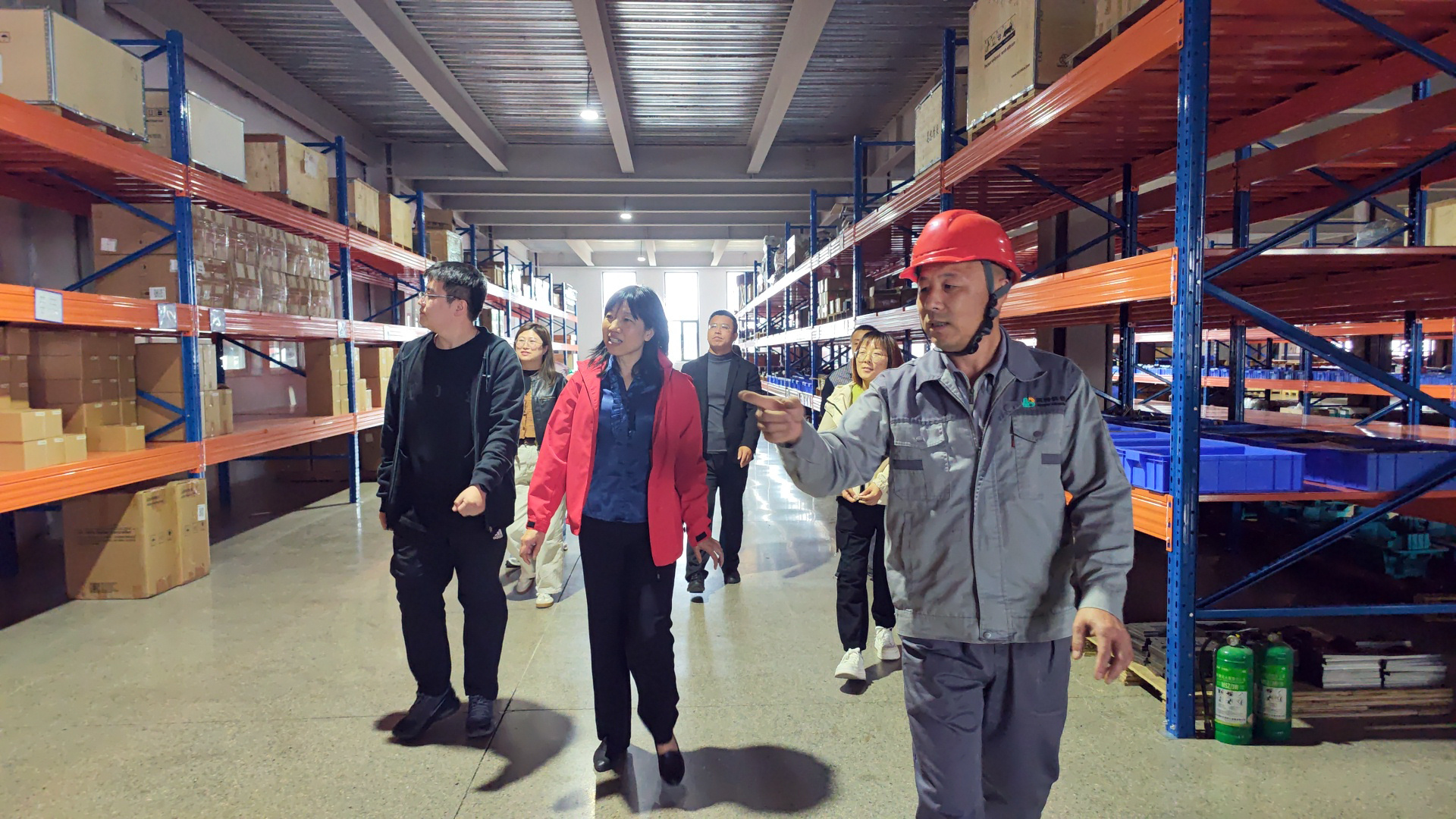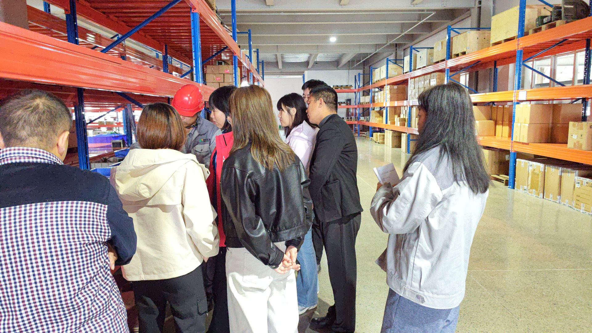 - 在物流仓库,库管人员演示了现代化仓储管理与物流配送流程。整齐的货架、高效的作业节奏,让人事、财务等同事对供应链管理有了具象理解,报表中的“存货”“流转”等概念变得生动而立体。